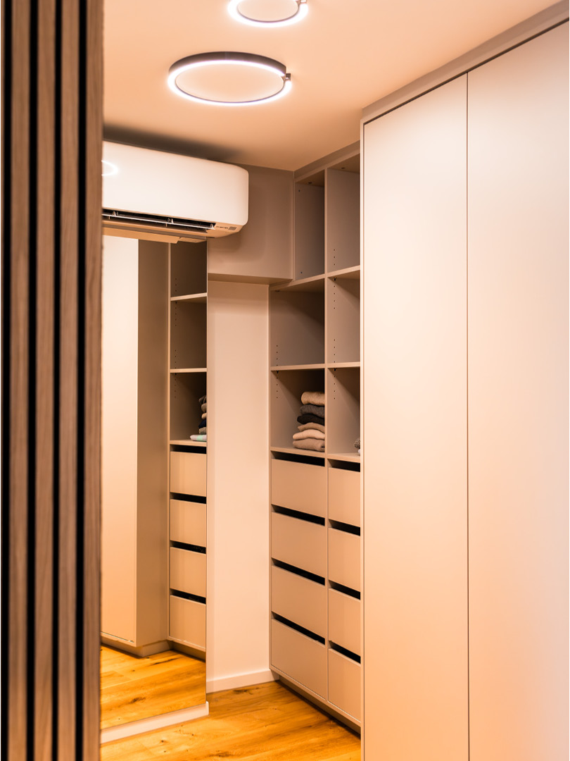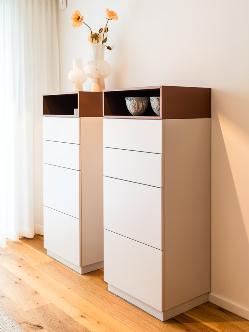 Inmitten eines vertrauten Umfelds entstand ein neuer Wohnraum, der Vergangenheit und Gegenwart verbindet. Die Wohnung wurde nicht nur modernisiert, sondern grundlegend neu strukturiert. Dabei integrierten wir Bestandsmöbel wie den historischen Schrank, der Geschichten aus alter Zeit erzählt.