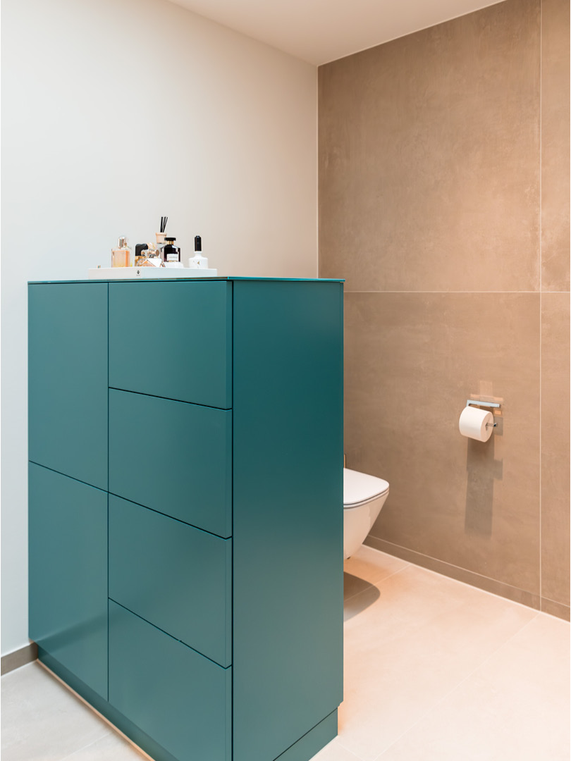 Durch die Vorziehung der Küche und die Schaffung eines versteckten Kubus als zweiten Arbeitsbereich gelang es uns, den Raum optimal zu nutzen. Dieser neue Bereich dient nun als Refugium für Küchengeräte, Back-Vorbereitungen und Vorratshaltung.