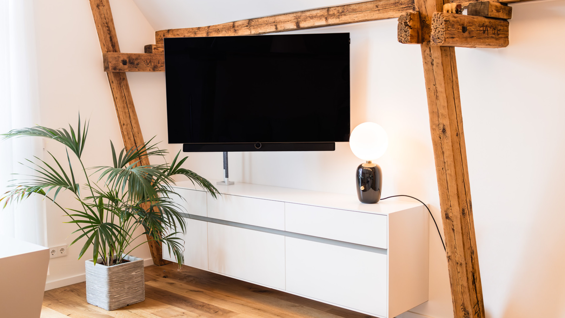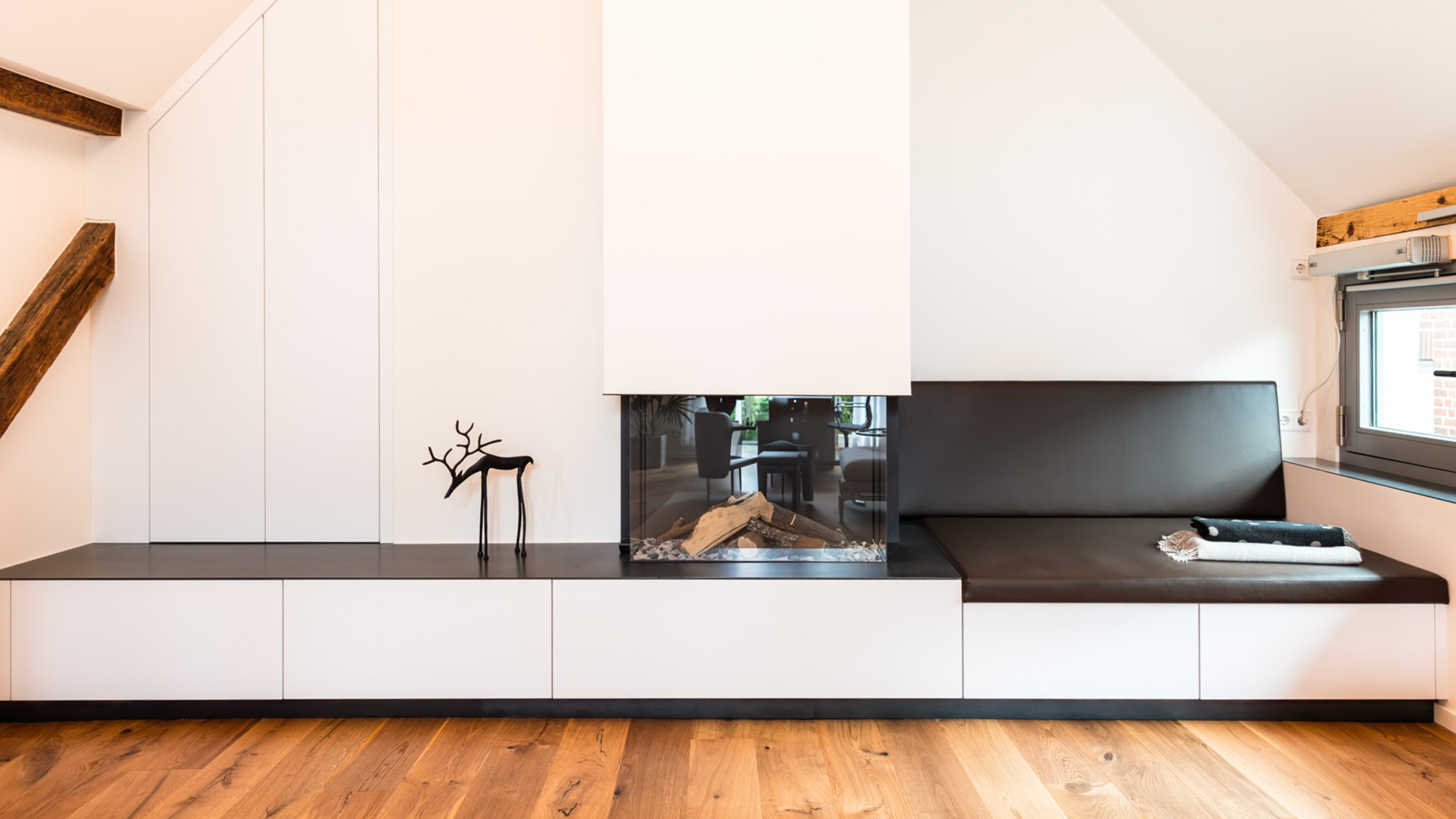 Die alte Balkenstruktur interpretierten wir modern und integrierten sie gezielt, um den ursprünglichen Charme zu bewahren und zugleich eine neue Klarheit zu schaffen.